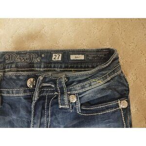 Miss Me Jeans Women's 27x28 (altered) Boot Cut Bling Cross Pocket Dark Wash