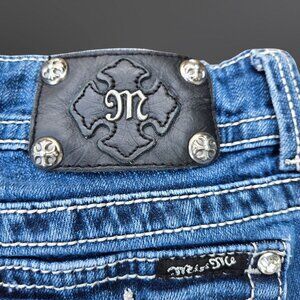 Miss Me Low Rise Denim Micro shorts Cut Off Size 27 McBling Y2K Rhinestone