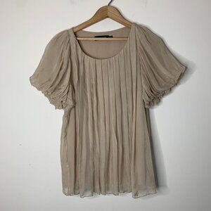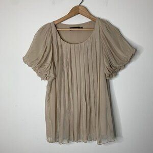 MM Couture Silk Blouse Pleated Short Sleeve Taupe Beige