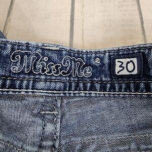 Miss Me Mini Flower Mid Rise Bootcut Jeans Rhinestone Embellished Blue 30 x 32