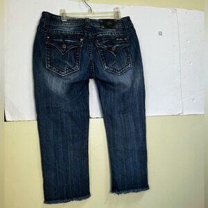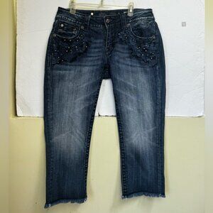 Miss Me Vintage Y2K Signature Cuffed Capri Jeans Embroidery Studs Zip Stretch 28