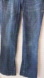a pair of blue denim bootcut jeans, likely for women, featuring a mid-rise fit and a light to medium wash. The jeans have classic five-pocket styling, a button closure with a zip fly, and belt loops. The leg opens from the knee down to a bootcut style.