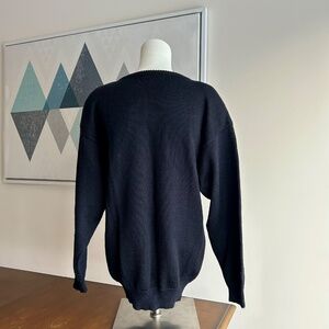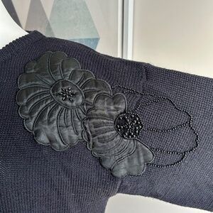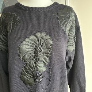 Miss Orly vintage black sweater, size small. Crew neck. Dropped shoulders and shoulder pads. Gorgeous design with flowers appliqués and beads. 70% acrylic, 30% wool. Made in Hong Kong.