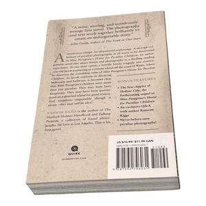Bonus features listed on the back include the first chapter of Hollow City, an exclusive Q&A with Ransom Riggs, and never-before-seen peculiar photographs.