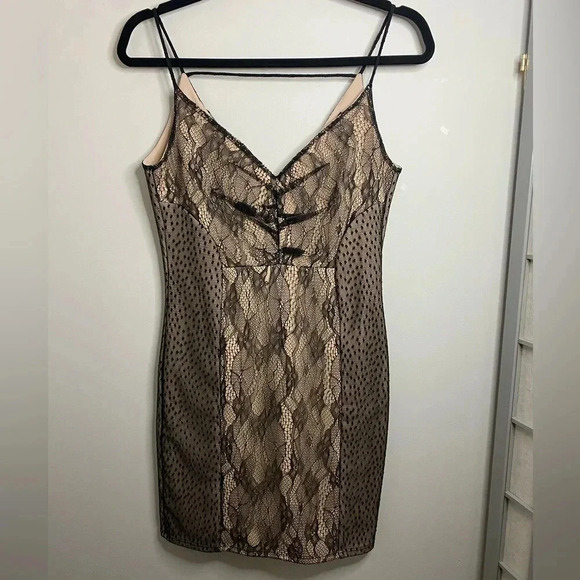 Miss Selfridge - Black lace mini dress with nude underlay - US4