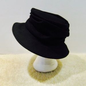 Miss Selfridge wool blend hat. Colour: Black. Hat features a wide soft brim, ruching in the back, asymmetric crown shape, sateen lining.Fabric Content: 65% Wool, 35% Mixed fibres.