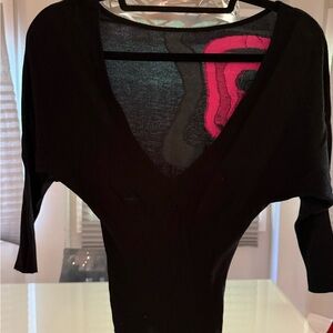 Stylish black sweater with a bold pink abstract design. Perfect for a chic look. In excellent condition, no signs of wear. Size Medium fits like a small but very stretchy.