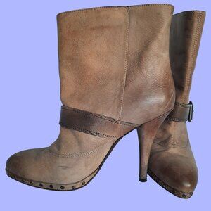 Miss Sixty Ankle Boots Heels 38 Size 7.5 Brown Distressed Leather Studded Buckle