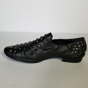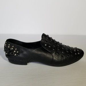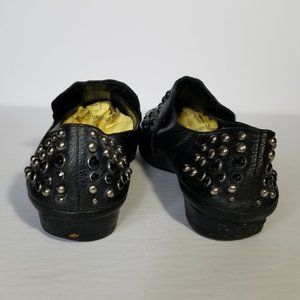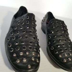Good Used Condition: there is wear on the sides of the heels (see pics); one of the studs is missing and one is falling off