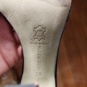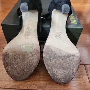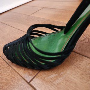 Black suede strappy heels, only worn twice. I love them but I can't walk in them.