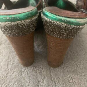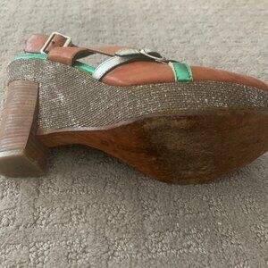 Super cool Miss Sixty platform sandals brown leather with metallic silver/grey trim. Size 37 (equivalent to US 8.5/9).