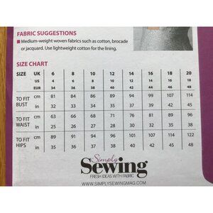 See envelope for more sizing and fabric recommendations. From Simply Sewing Magazine.