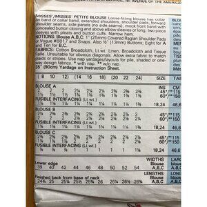 Misses or Petite 1980s Blouse Pattern Bust 36 38 40 Vogue 7281 UNCUT