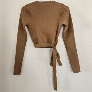 Missguided Brown Ribbed Wrap V neck Top Long Sleeve Size Small b26e