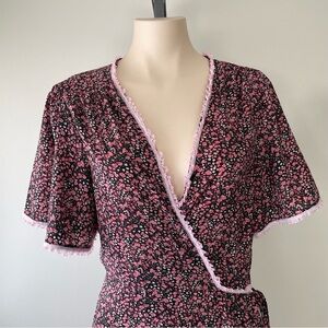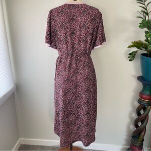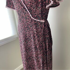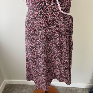 Missguided Plus Floral Wrap Dress Long Midi Length Waist Tie Lace Size 14