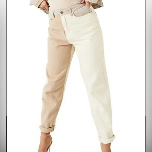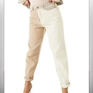 Missguided Riot Neutral Patched High Rise Mom Jean Size 6