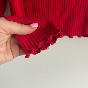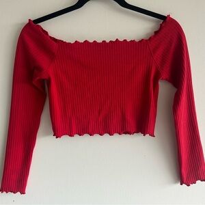Missguided, size 4, off the shoulder long sleeve crop top. Cherry red