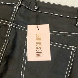 AI description: Sleek black skinny jeans by Missguided. Features white stitching detail. Perfect for a stylish look.
