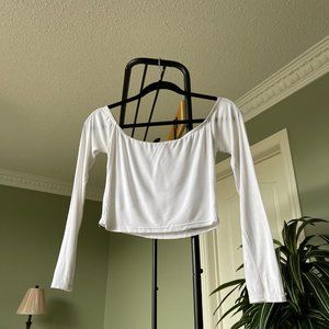 Missguided white off-the-shoulder skin-tight long sleeve top