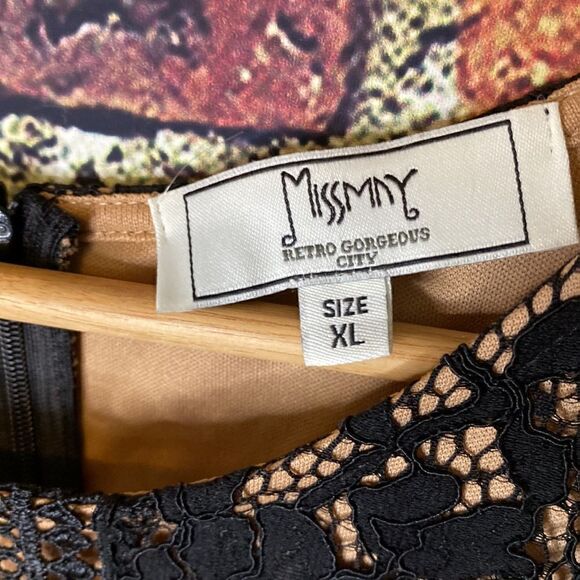 Missmay Retro Gorgeous City Black Lace & Tan Cocktail Dress Size XL (runs Small)