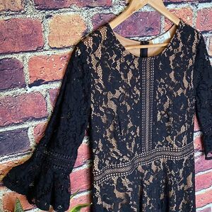 Missmay Retro Gorgeous City Black Lace & Tan A Line Dress Size XL (runs smaller) in excellent condition. This dress is just stunning with the black lace on the outside and lined with a Tan soft material on the inside. Beautiful detailing through out this piece. Great for a winter weddings, events, parties, vacations, or casual date night on the town. This a classic timeless piece to add to any wardrobe. Zipper in the back fully functional. Just wow! Love this one…please check measurements. Ask if you have questions.