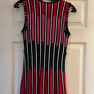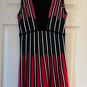 Classic Missoni Empire Waist Dress - fine cotton knit, a prestigious, signature Missoni characteristic. Includes black slip dress/underlay. Colours of dress- Blush Pink, carnelian, forest green, black and white. In excellent condition, no pulled threads, no pilling. Size: IT 38