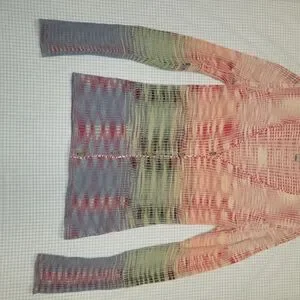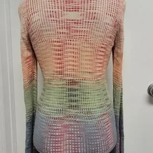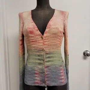 Stylish Missoni cardigan with a gradient color pattern. Features a button-up front and ribbed texture. Ideal for chic layering. size 8 US. in great condition.