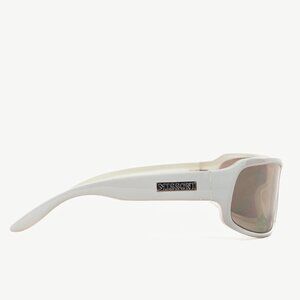 These sunglasses from Missoni are crafted in a grey acetate with translucent accenting on the inside, and feature oversized rectangular frames, tinted grey lenses, inset nose pads, and logo-engraved plating on the temples.