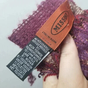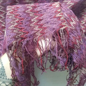 Missoni Scarf Long Fringe Multicolor Zig Zag Knit Wool Mohair Blend Purple