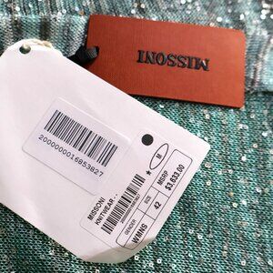 This stunning Missoni piece, made in Italy, is the epitome of quality and creative design. Featuring a chic knitted texture, a daring deep neckline, and long sleeves, it radiates sophistication and effortless style. The multicolor pattern, adorned with shimmering sequins, adds a touch of glamour, making it perfect for any occasion. With no pockets, its sleek silhouette emphasizes the beauty of the intricate knitwork and the sparkling details. Crafted from 70% viscose and 30% polyester, this piece combines comfort with high-end fashion. Elevate your wardrobe with this timeless, Italian-made treasure from Missoni.