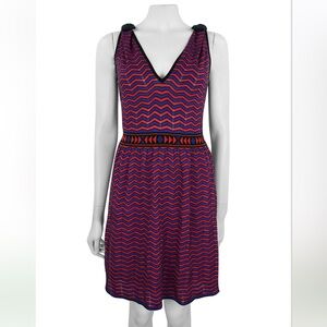 Missoni red, black & blue chevron stripe bow detail dress - size 8 (Medium)