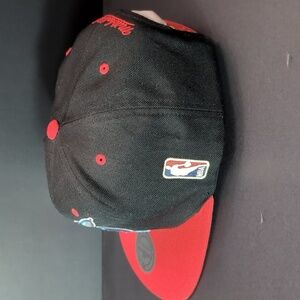 Mitchel & Ness Hardwood Classics Rockets Men's Flat Bill Black/Red Snapback Hat.