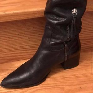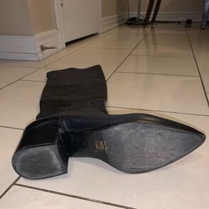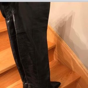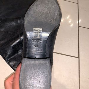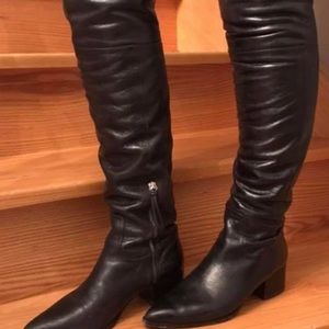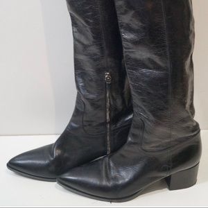 MIU MIU MADE IN ITALY BLACK LEATHER POINTED TOE OVER KNEE FLAT BOOTS