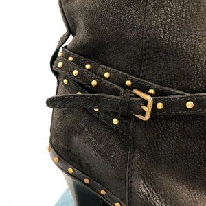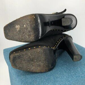 Miu Miu Black Leather Heeled Booties w Gold Studs and Studded Belt Detail size 8