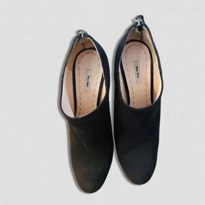Miu Miu Black Suede Stiletto Heel Ankle Boots Zip 36.5