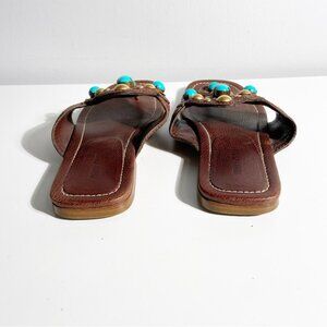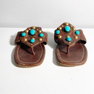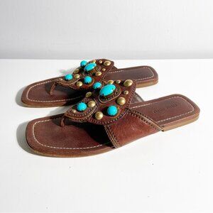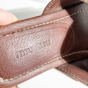 Miu Miu Dark Brown Leather Stone Studded Thong Flat Sandals Size 39