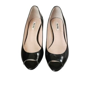 Miu Miu Embellished Jeweled Crystal Block Heel Black Patent Leather Pumps, peep-toe. Worn only once, excellent condition. ( new padding) Heels 1,9"