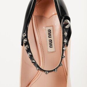 Miu Miu Light Pink & Black Bicolor Studded Mary Janes