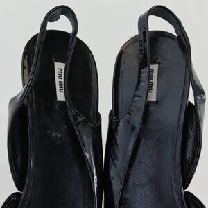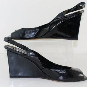 Miu Miu Patent Leather Slingback Peep Toe Wedges (EU 37 - US 6.5)