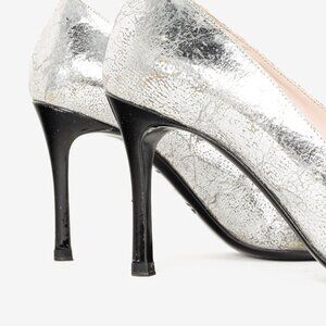 Miu Miu Silver Specchio Crackle Foil Metallic Heels