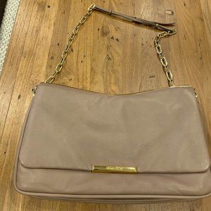 Miu miu shoulder bag/clutch purchased in Italy. Beautifully soft nappa leather in cammeo colour with gold coloured chain and accents.