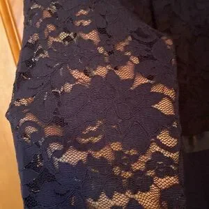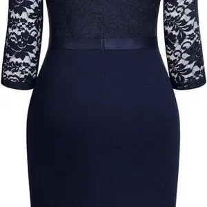 It features a Vintage Floral Lace Contrast Style, Flattering See-through Lace 2/3 Sleeve, Hidden Zipper on the Back, and falls to Knee Length.