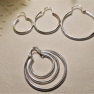 Mix & M 2/$25 Nwot Stamped 925 Sterling Silver Hoop earrings in 14mm minimalist
