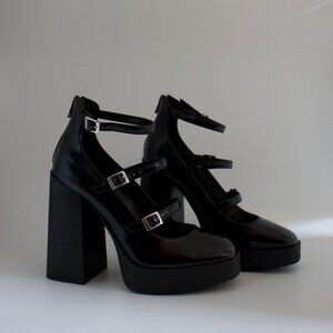 - Adjustable buckle ankle & dual Mary Jane strap closures