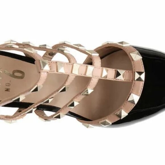 Fabulous strappy pump that will take your look to new chic heights! With caged styling and stud accents, these 2-tone Mix No. 6 heels will dress up your look with ease! Faux patent leather. Only worn once.