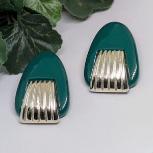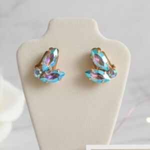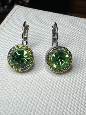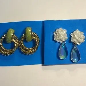 Mix and match pierced earrings gold green and iridescent white and clear stone
