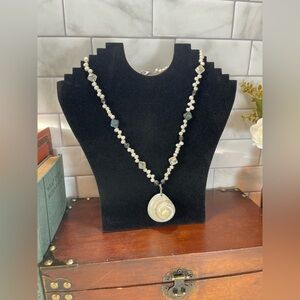 Mixed Freshwater pearl and abalone necklace, blacks, whites and greys.