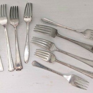 9 Mixed Brands of Antique & Vintage Silver Plate Flatware Forks