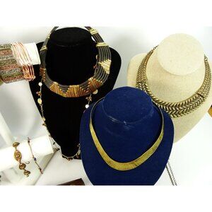45-piece mixed metal jewelry lot — brass, copper, silver & gold tones. Includes necklaces, bangles, bracelets & earrings in boho chic, modern & statement styles. Perfect for resellers, stylists, or anyone who loves bold, trendy accessories.