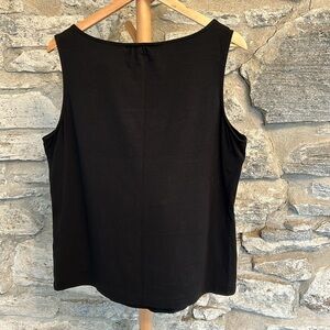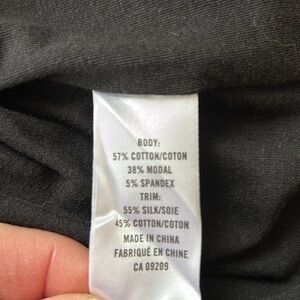 Black mixed media top. Front is satin over same material as back. Gathered at front with rhinestone details. Never put in dryer. Cotton modal blend. Excellent condition.